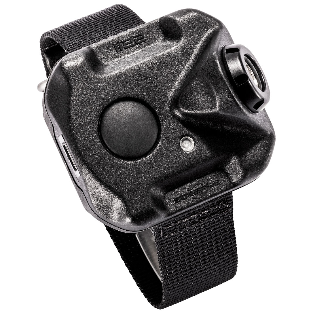 Developed with input from active-duty police officers, the SureFire 2211 WristLight straps to your support-side wrist and is ergonomically designed to align with a handgun when the weapon is held with a standard two-handed grip. Its broad MaxVision Beam® projects tremendous light for threat identification at close to medium range in low light and darkness, bright enough to overwhelm an aggressor’s dark-adapted vision and providing a tactical advantage.