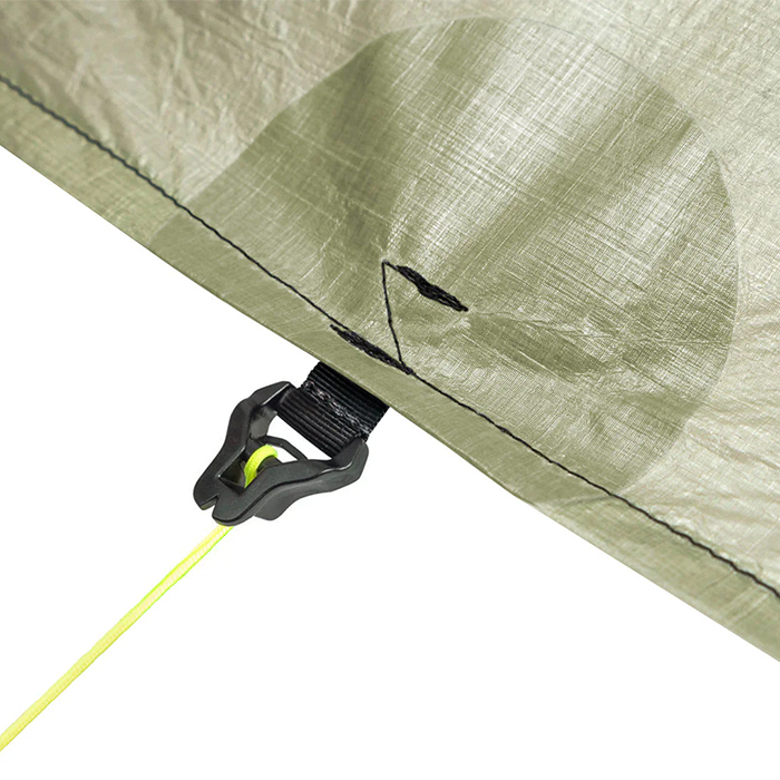 This oversized ten-foot by thirteen-foot tarp is large enough to pitch over a picnic table or group eating area. It can also be pitched over your tent to create dry porch area on either side. Turn a miserable wet day in camp into a relaxing day watching the raindrops with the Zpacks Big Ass Camp Tarp. This tarp ships with a medium stuff sack, 50 feet of 2.0mm Yellow Z-Line cord, and 2 Mini-D Carabiners to clip around trees.